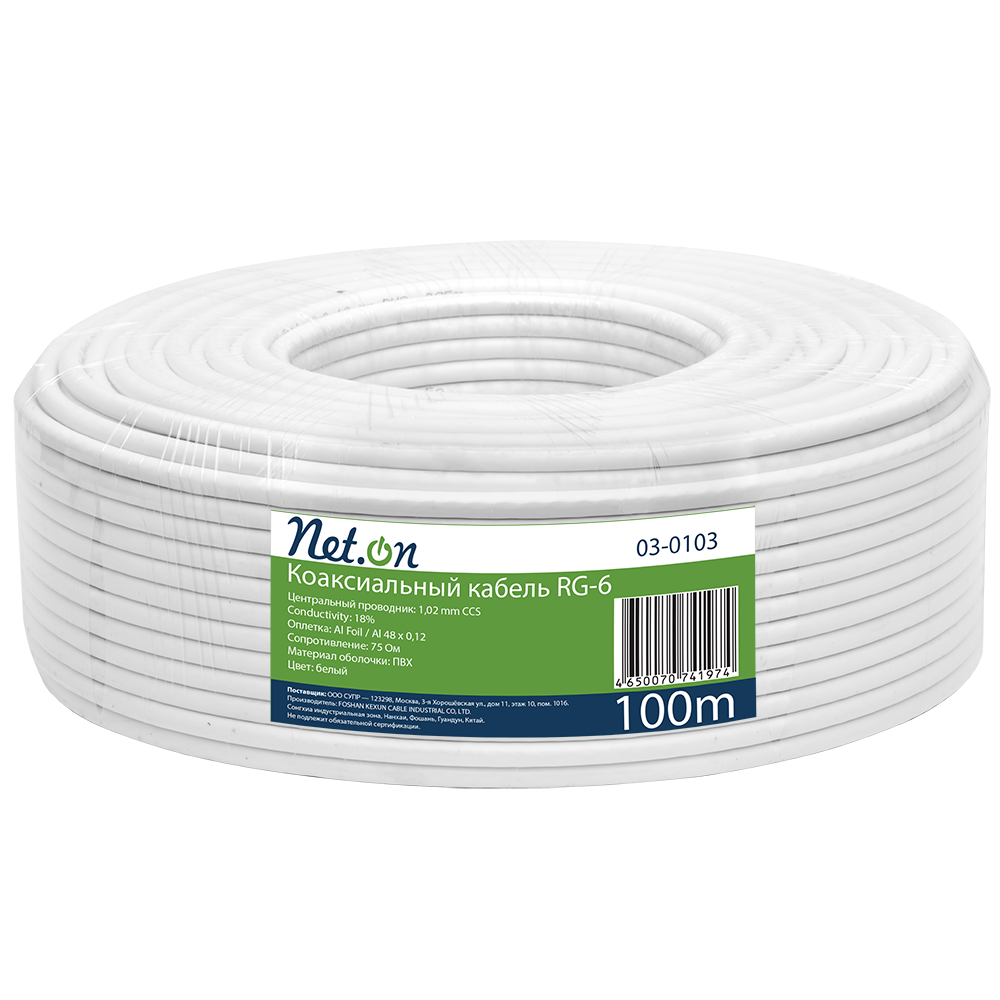 Кабель коаксиальный RG-6 (radio grade) – кабель, который обеспечивает низкие потери на высоких частотах. Применяется для обеспечения кабельного, спутникового телевидения и видеонаблюдения.