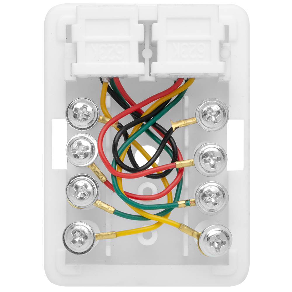 Неэкранированная телефонная розетка настенного монтажа. Имеет 2 порта RJ-12 (6р4с).