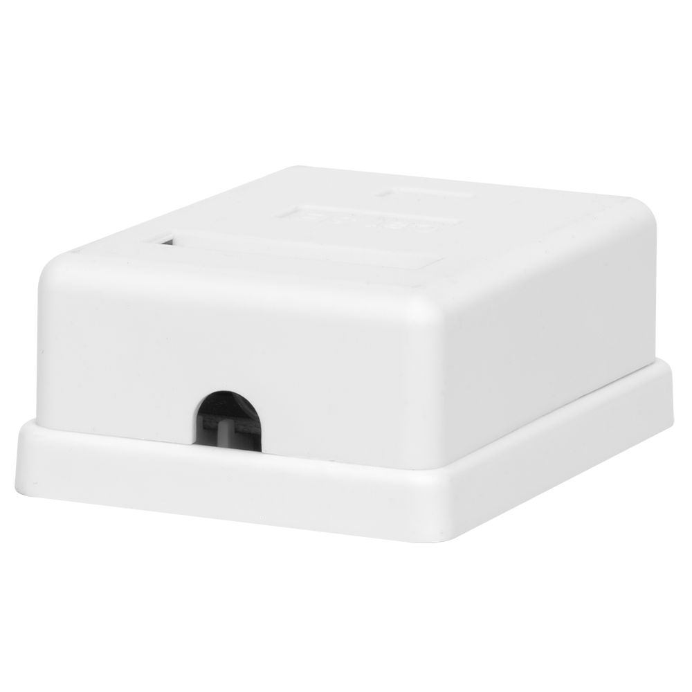Экранированная компьютерная розетка настенного монтажа. Соответствует характеристикам категории 5е. Имеет 1 порт RJ-45 (8р8с).