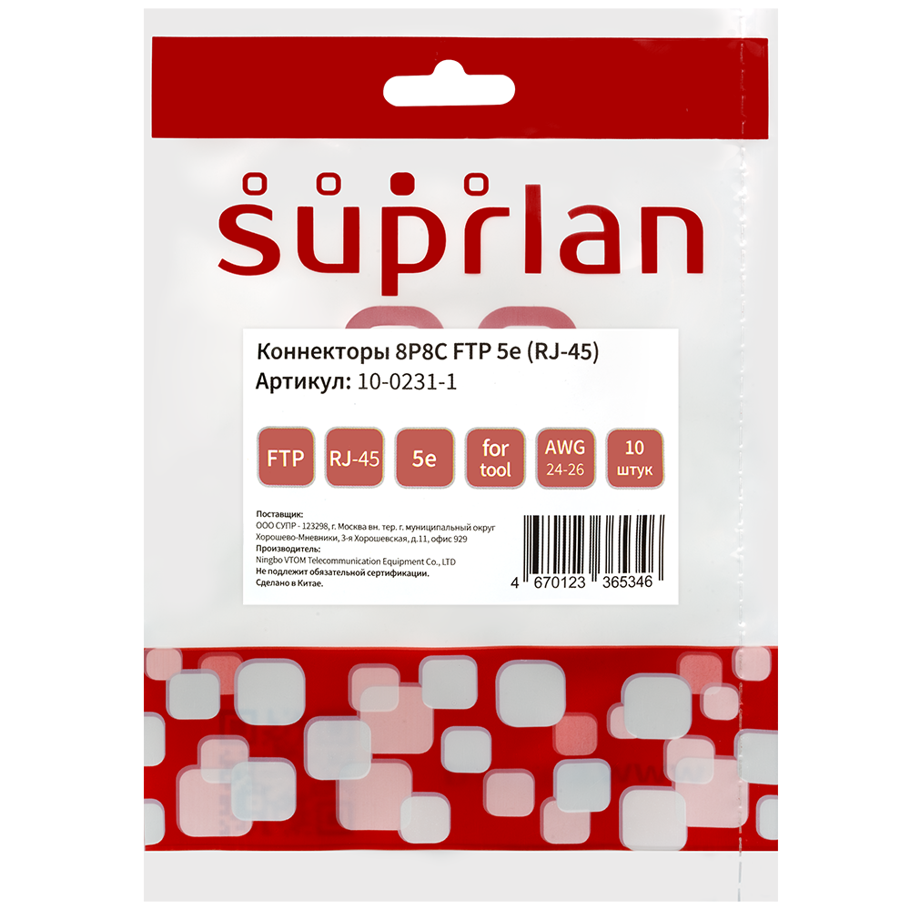 Коннекторы 8P8C FTP 5e (RJ-45) уп. 10шт (DIY)