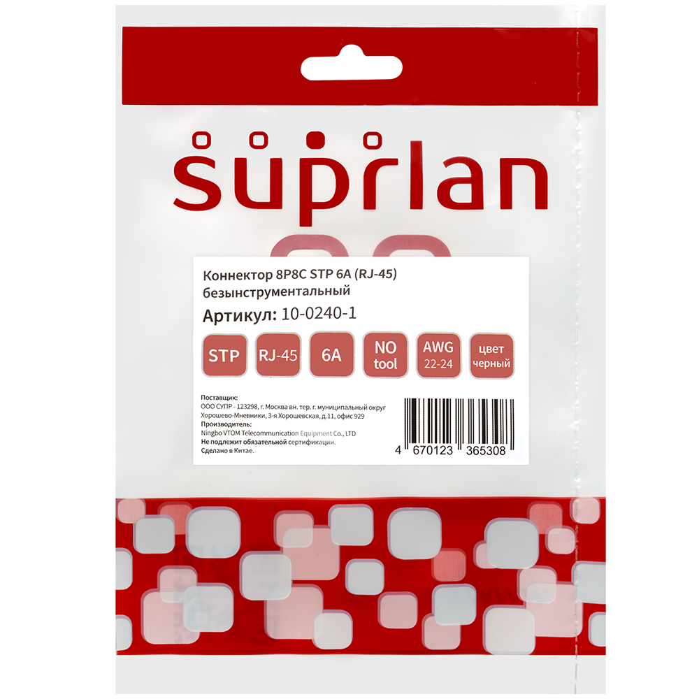 Коннектор 8P8C STP 6A (RJ-45) безынструментальный (DIY)