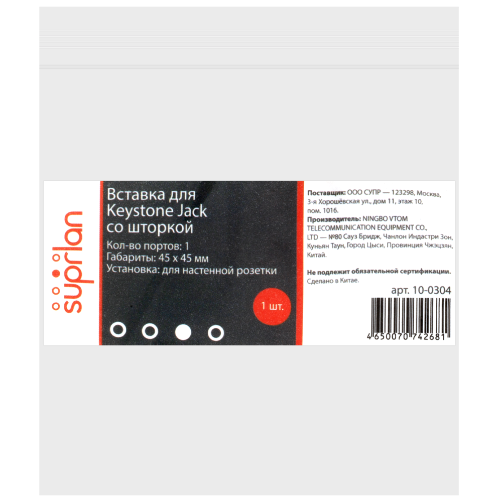 На сайте supr.ru также представлена лицевая панель 1 порт (45*45 мм).