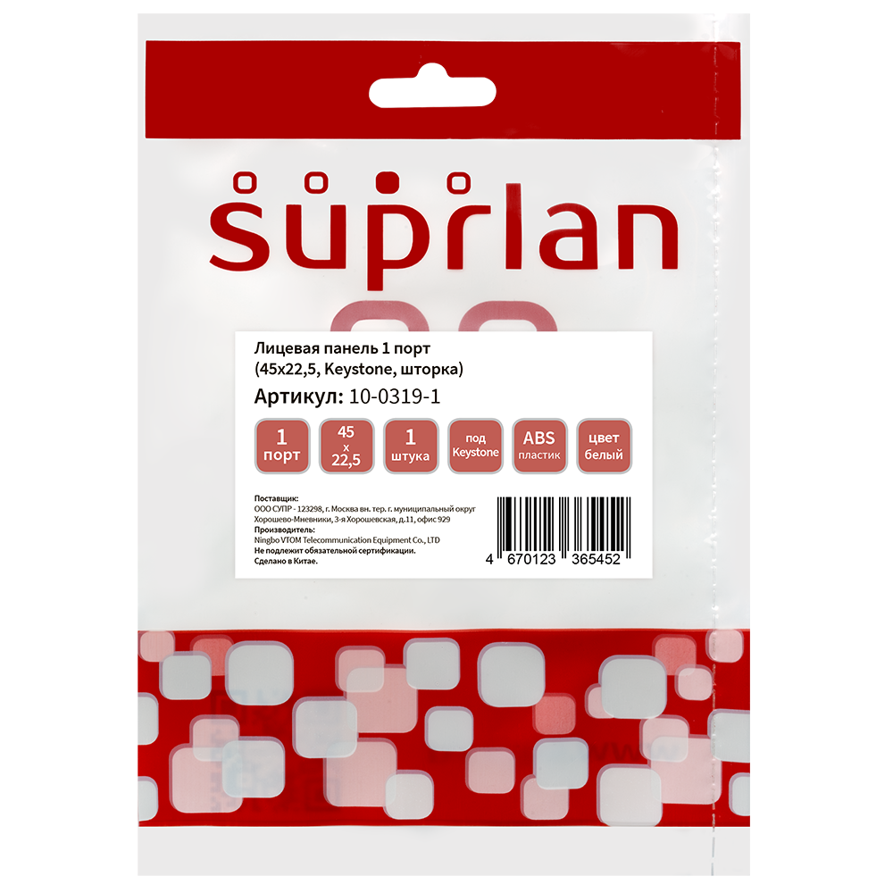 Лицевая панель 1 порта (45х22,5, Keystone, шторка)
