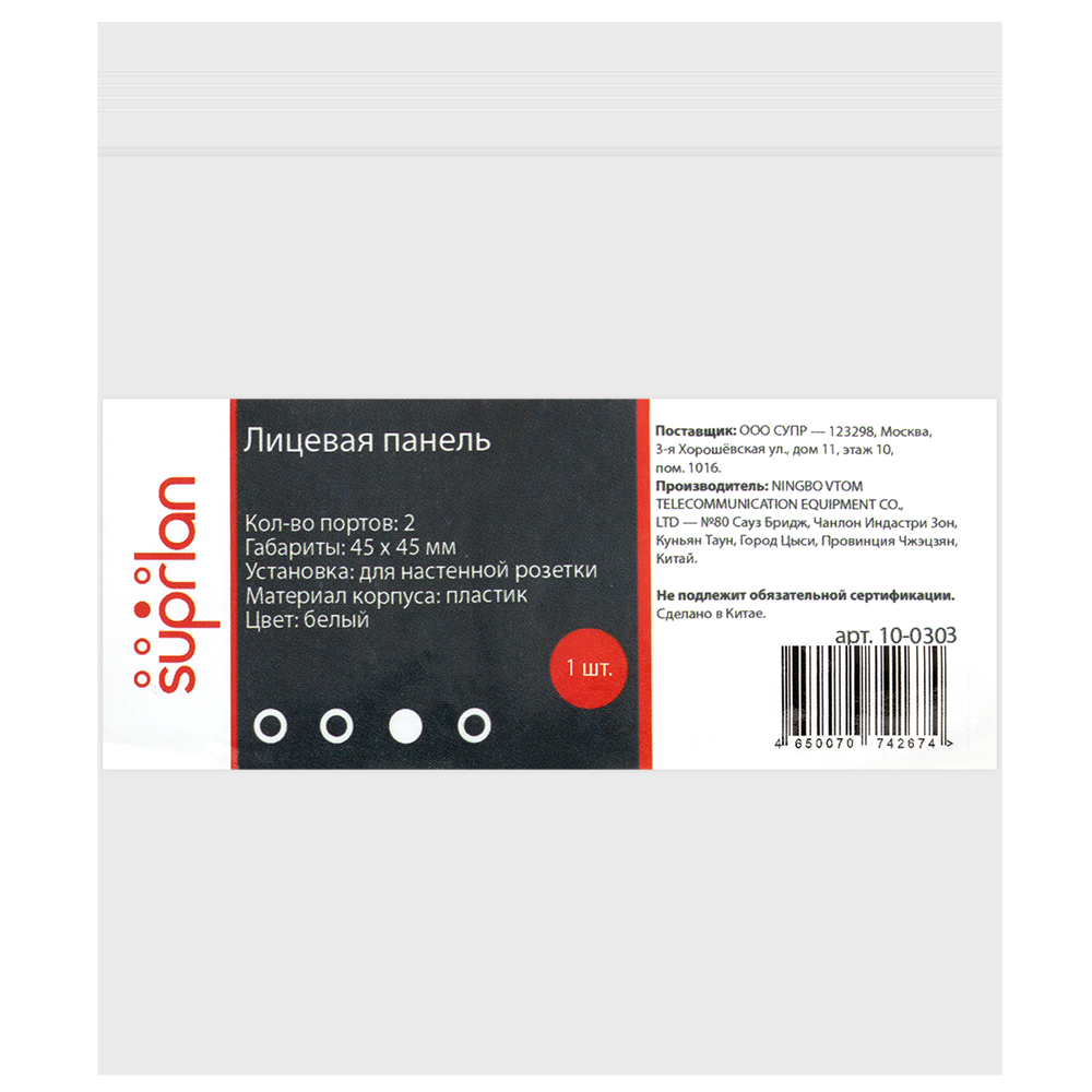 Корпус лицевой панели для модулей Keystone производится из ударопрочного ABS-пластика. Панель поставляется в белом цвете.