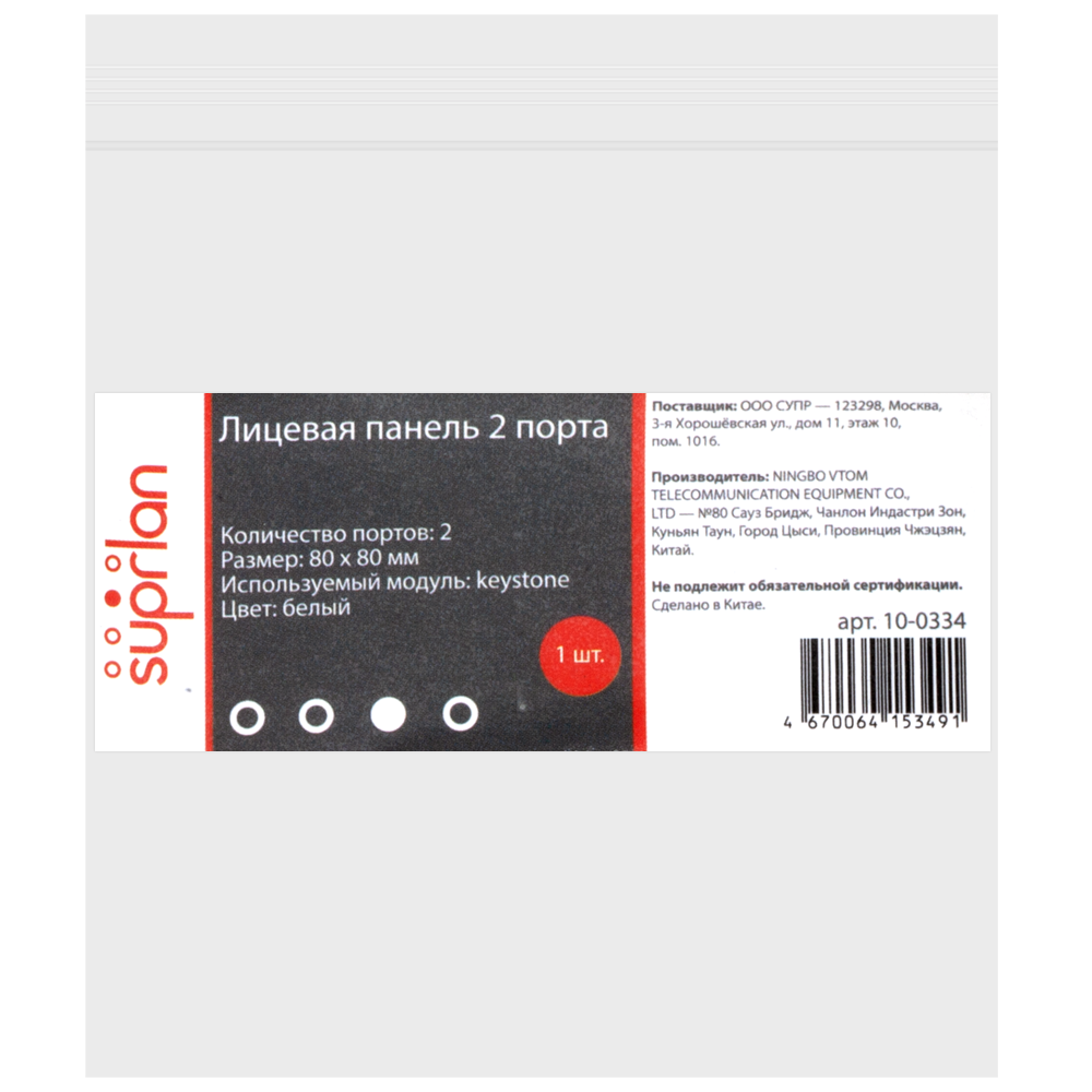 Лицевая панель 2 порта (80х80, Keystone, шторка) предназначена для организации информационных портов на рабочем месте