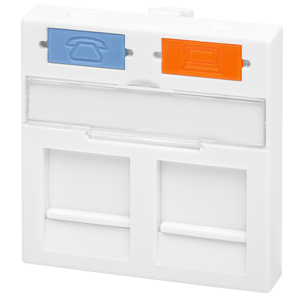 Лицевая панель 2 порта (45х45, Keystone, шторки, откидное маркировочное окно) (DIY)