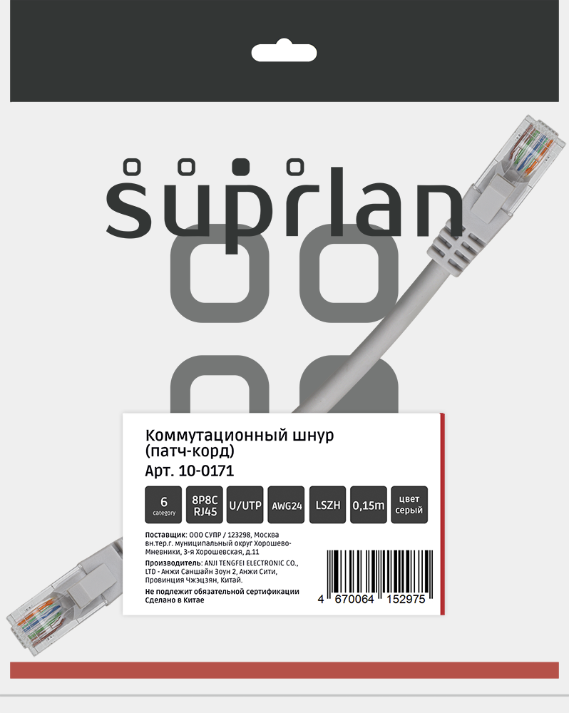 Категория: 6 Полоса пропускания, МГц: 250 Материал токопроводящей жилы: Cu Диаметр токопроводящей жилы: 24AWG (7x0,2мм) Материал изоляции токопроводящей жилы: Полиэтилен Тип коннектора: RJ45/8P8C-RJ45/8P8C Тип проводников: Многожильный (Stranded) Экранирование: FTP (F/UTP) общий экран Защитный колпачок: Заливной, с защитой защелки Внешний диаметр кабеля, мм: 6.2 Материал оболочки: LSZH Цвет оболочки: Серый (Gray) Соответствие стандартам: ISO/IEC 11801, TIA/EIA-568, EN 50173 Поддерживаемые приложения: 10BASE-T, 100BASE-TX, 100BASE-T4, 1000BASE-T, 10GBASE-T, ATM-25, ATM-51, ATM-155 Допустимая температура монтажа, °С: от 0 до +60 Допустимая температура эксплуатации, °С: от -20 до +60 Срок службы: Не менее 15 лет Упаковка: п/э пакет 1шт |
