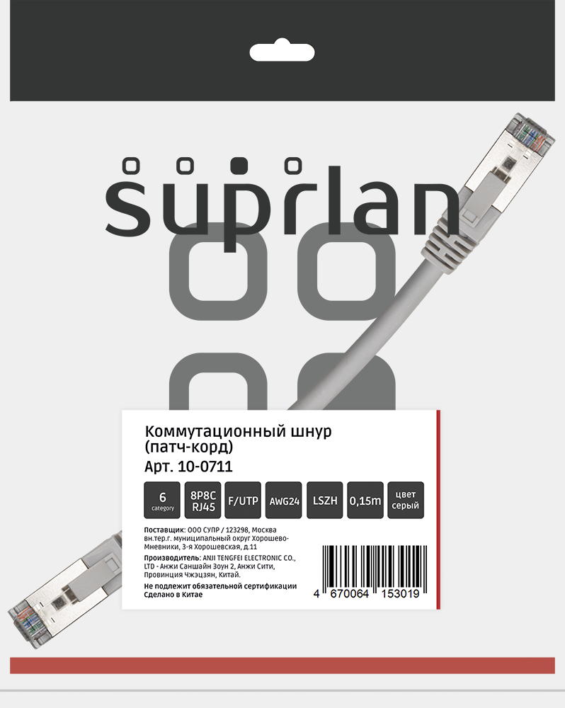 Категория: 6 Полоса пропускания, МГц: 250 Материал токопроводящей жилы: Cu Диаметр токопроводящей жилы: 24AWG (7x0,2мм) Материал изоляции токопроводящей жилы: Полиэтилен Тип коннектора: RJ45/8P8C-RJ45/8P8C Тип проводников: Многожильный (Stranded) Экранирование: FTP (F/UTP) общий экран Защитный колпачок: Заливной, с защитой защелки Внешний диаметр кабеля, мм: 6.2 Материал оболочки: LSZH Цвет оболочки: Серый (Gray) Соответствие стандартам: ISO/IEC 11801, TIA/EIA-568, EN 50173 Поддерживаемые приложения: 10BASE-T, 100BASE-TX, 100BASE-T4, 1000BASE-T, 10GBASE-T, ATM-25, ATM-51, ATM-155 Допустимая температура монтажа, °С: от 0 до +60 Допустимая температура эксплуатации, °С: от -20 до +60 Срок службы: Не менее 15 лет Упаковка: п/э пакет 1шт |