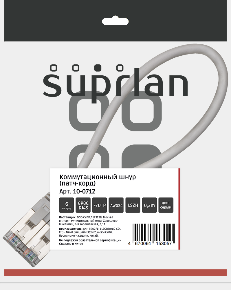 Категория: 6 Полоса пропускания, МГц: 250 Материал токопроводящей жилы: Cu Диаметр токопроводящей жилы: 24AWG (7x0,2мм) Материал изоляции токопроводящей жилы: Полиэтилен Тип коннектора: RJ45/8P8C-RJ45/8P8C Тип проводников: Многожильный (Stranded) Экранирование: FTP (F/UTP) общий экран Защитный колпачок: Заливной, с защитой защелки Внешний диаметр кабеля, мм: 6.2 Материал оболочки: LSZH Цвет оболочки: Серый (Gray) Соответствие стандартам: ISO/IEC 11801, TIA/EIA-568, EN 50173 Поддерживаемые приложения: 10BASE-T, 100BASE-TX, 100BASE-T4, 1000BASE-T, 10GBASE-T, ATM-25, ATM-51, ATM-155 Допустимая температура монтажа, °С: от 0 до +60 Допустимая температура эксплуатации, °С: от -20 до +60 Срок службы: Не менее 15 лет Упаковка: п/э пакет 1шт |