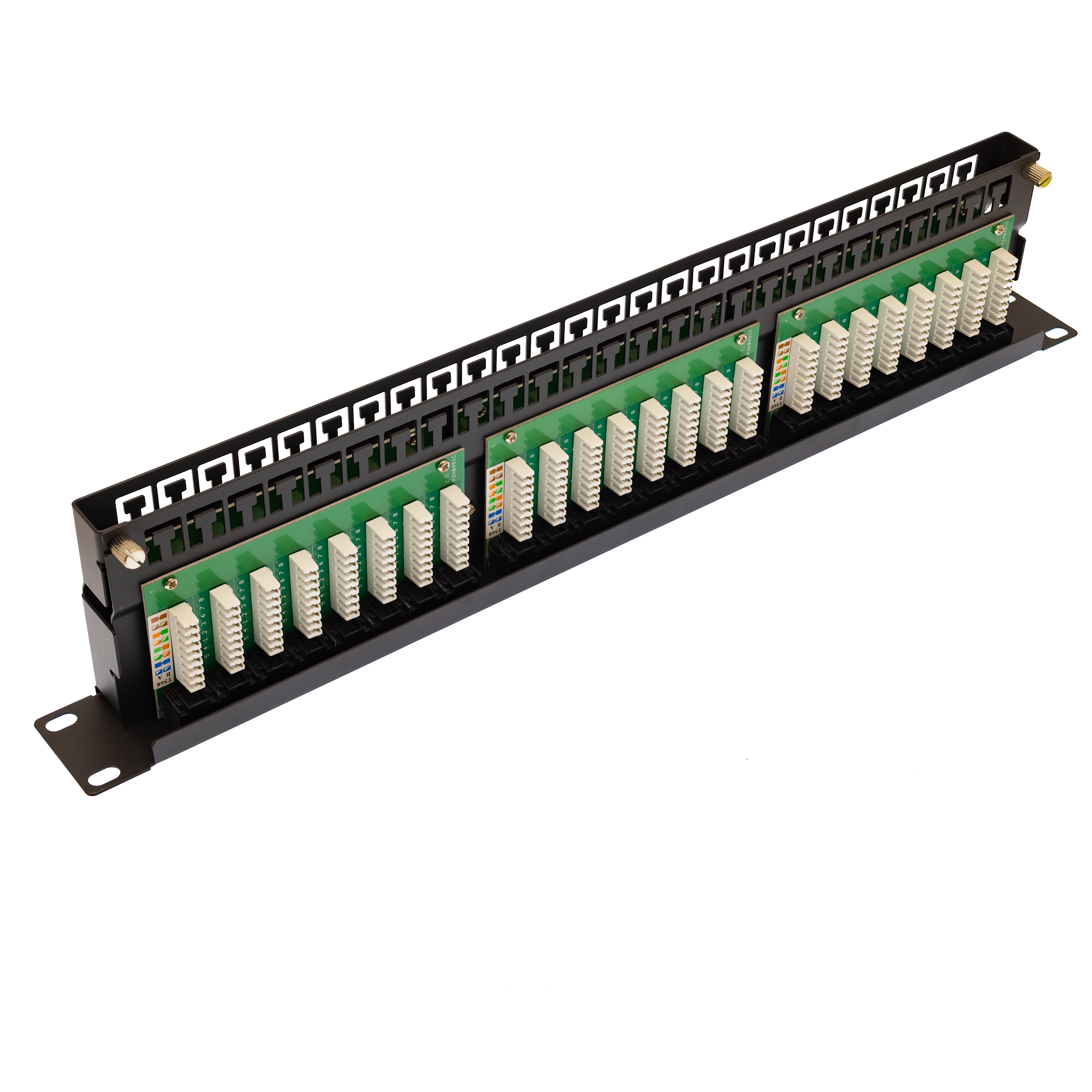 С лицевой стороны все порты пронумерованы. Конструкцией предусмотрена съемная верхняя часть патч-панели, для удобства терминирования кабелей.