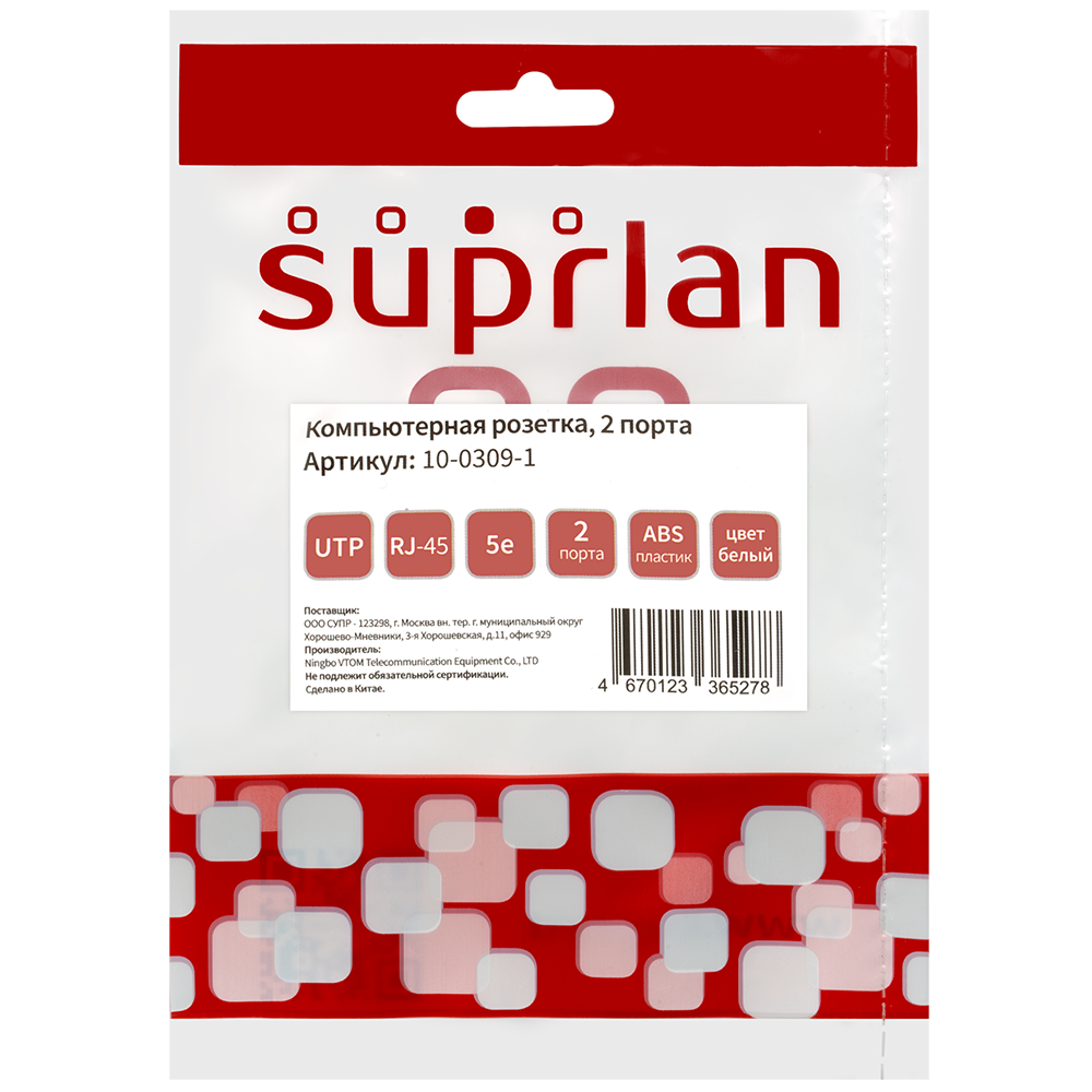 Компьютерная розетка 8P8C (RJ-45), UTP, 5e, 2 порта (DIY)