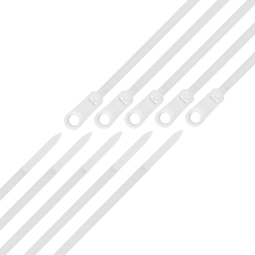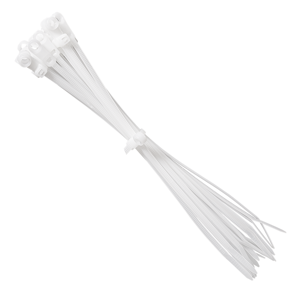 Стяжка кабельная под винт – отрезок прочного, гибкого полимера, на конце которого расположен специальный фиксатор. Преимущество кабельной стяжки под винт перед стандартной в том, что у она оснащена специальным отверстием для крепления стяжки гвоздем к поверхности.