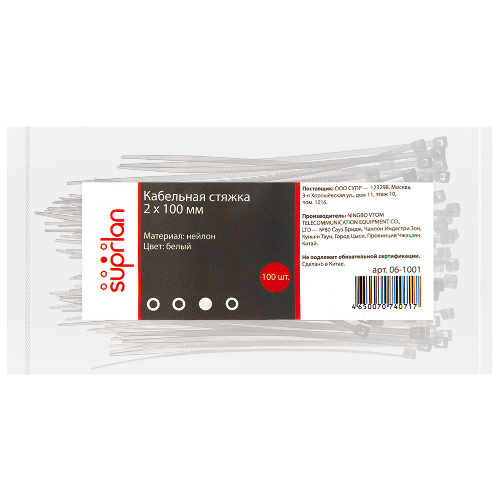 Стяжки SUPRLAN изготавливаются из нейолона 6.6, что гарантирует их прочность и долговечность.