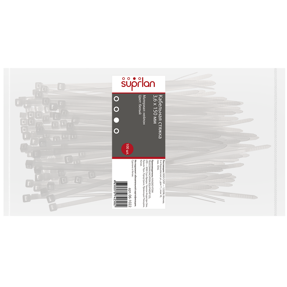 Стяжки SUPRLAN изготавливаются из нейолона 6.6, что гарантирует их прочность и долговечность.