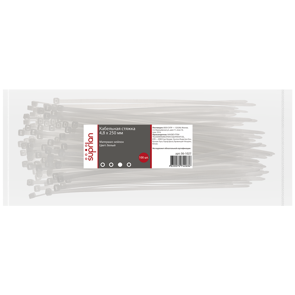 Стяжки SUPRLAN изготавливаются из нейолона 6.6, что гарантирует их прочность и долговечность.