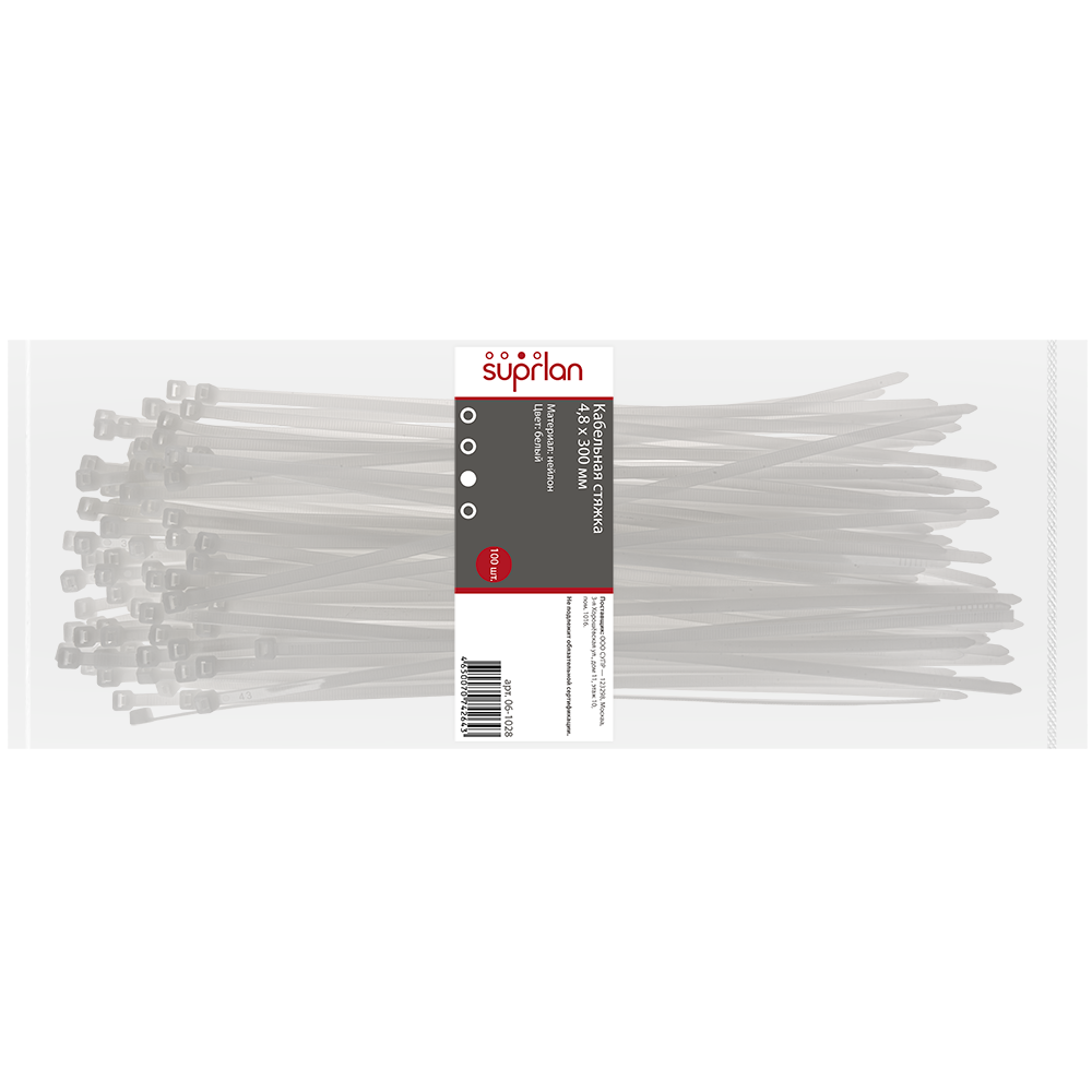 Стяжки SUPRLAN изготавливаются из нейолона 6.6, что гарантирует их прочность и долговечность.