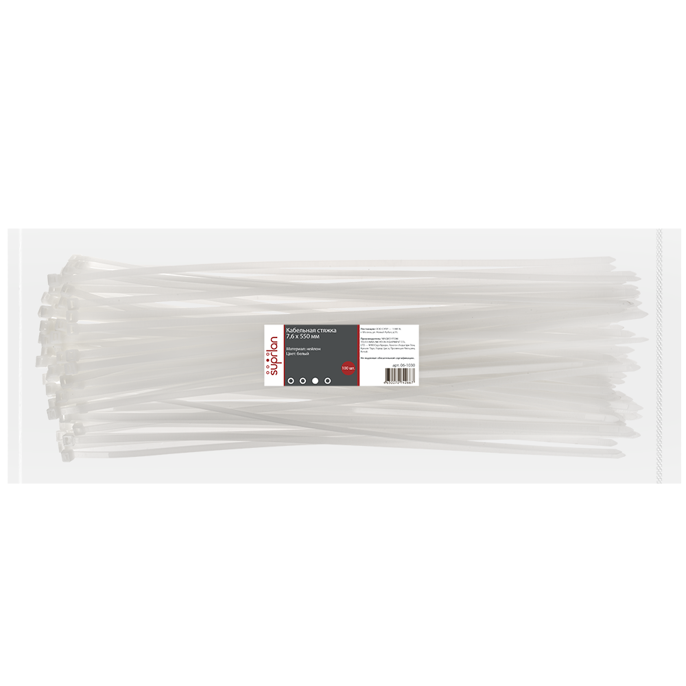Стяжки SUPRLAN изготавливаются из нейолона 6.6, что гарантирует их прочность и долговечность.