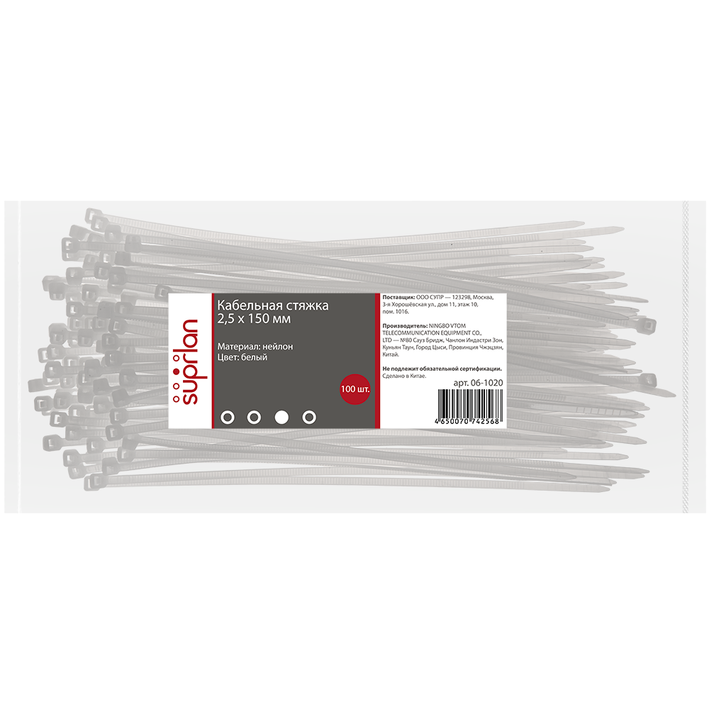 Стяжки SUPRLAN изготавливаются из нейолона 6.6, что гарантирует их прочность и долговечность.