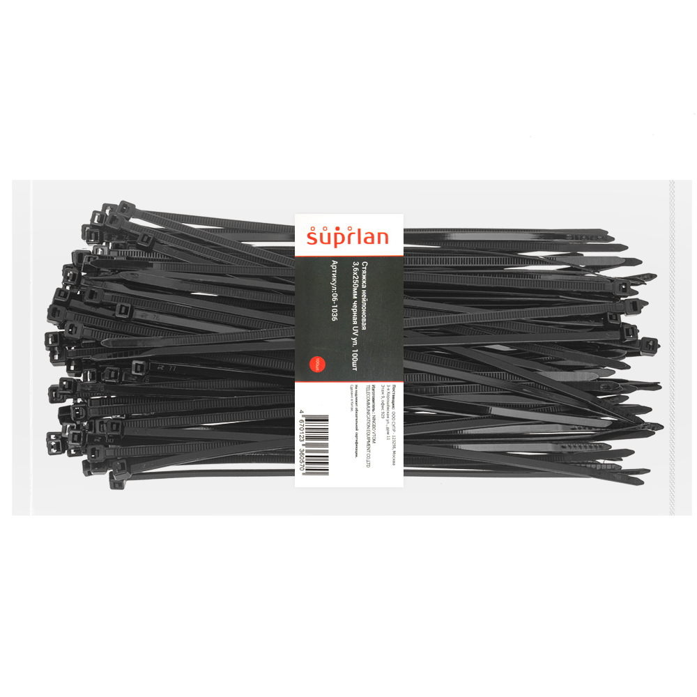 Стяжка нейлоновая 3,6х250мм черная UV уп. 100шт